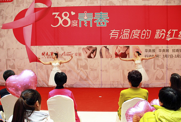 3月7日,爱慕公益基金会联合西安开元商场举行“38度青春 有温度的粉红丝带”第二季义乳捐赠活动。本次活动诚邀符合条件的西安受助者,捐出义乳100个。旨在呼吁更多的人关爱女性健康!也为即将到来的三八妇女节送出最诚挚的爱心礼物!