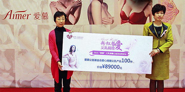2015年7月12日,爱慕集团、爱慕公益基金会联合北京王府井百货启动了2015年爱慕“粉红馨爱?义乳捐赠”活动,此次北京站的义乳捐赠行动为乳癌切除手术后的女性朋友们带去健康的呵护与心灵的关爱,同时也向所有女性朋友们传递了关爱乳房、呵护健康的美好祝愿。