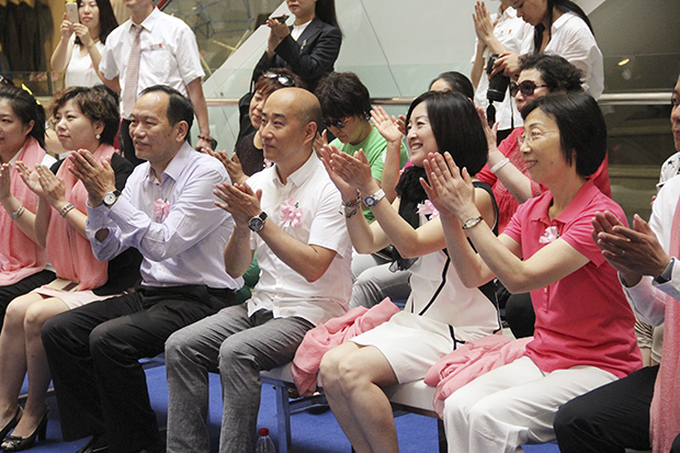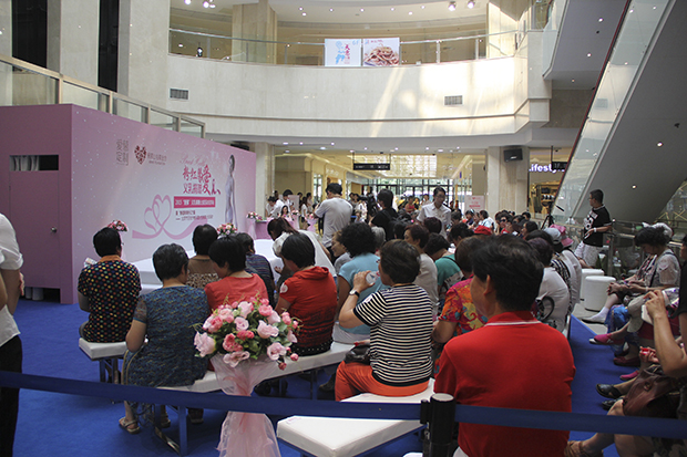 活动地点设在人流密集的开元商场中厅,以“美丽天使·粉红丝带”为主题的开场舞,吸引了众多人群驻足观看,活动现场以粉红为主打色,与义捐主题“38度青春 有温度的粉红丝带”相呼应,向围观的人群传达出此次活动的主题。