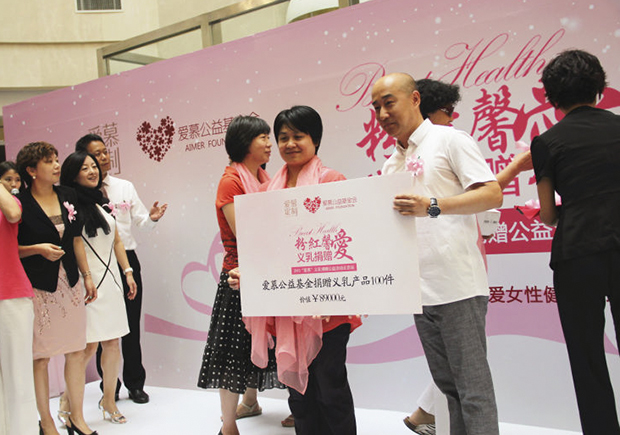 2015年7月12日,爱慕集团、爱慕公益基金会联合北京王府井百货启动了2015年爱慕“粉红馨爱·义乳捐赠”活动,此次北京站的义乳捐赠行动为乳癌切除手术后的女性朋友们带去健康的呵护与心灵的关爱,同时也向所有女性朋友们传递了关爱乳房、呵护健康的美好祝愿。