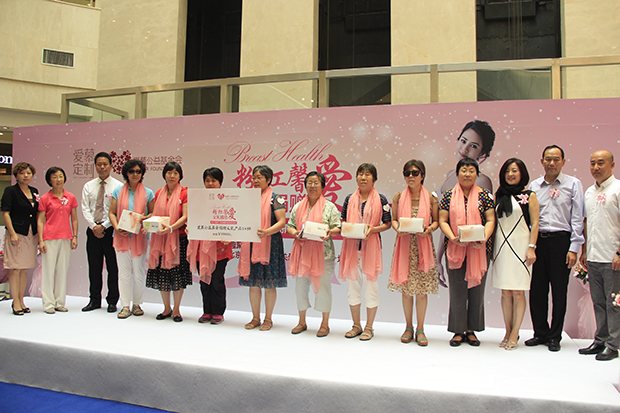 本次活动北京爱慕内衣有限公司“爱慕公益基金会”向重庆新桥医院肿瘤科、向阳花癌友会赠送义乳150个。