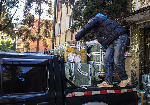 2013年11月8日,这些捐赠物资分装成21箱由中通物流运往凉山,并由当地志愿者分发给凉山州美姑县尔其乡色口村、拉马乡和洒库乡塔千村三个援助点,受到村民们的热烈欢迎。