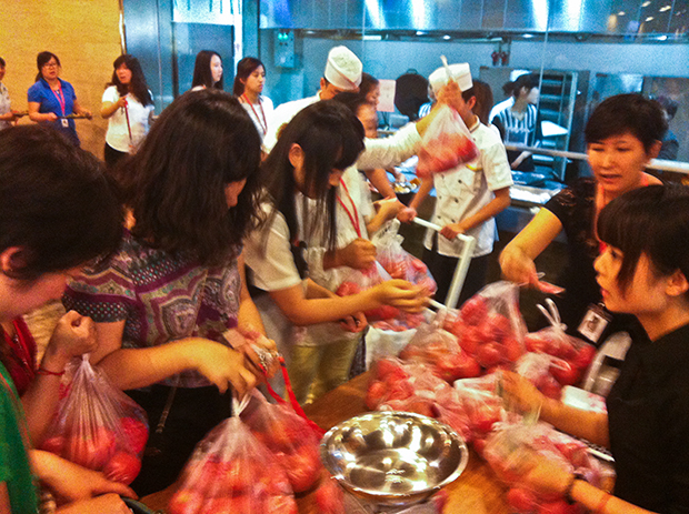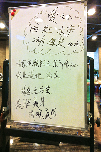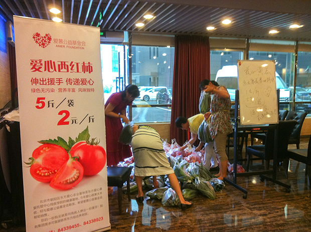朝阳区崔各庄乡北皋村,有一片用真情、爱心和持之以恒的耐力建设起来的爱的家园,那里由东方综合养老院、东方儿童福利院、国门医院和东方康复中心构成了一个综合性的民间社会福利基地。为了让康复人员有一个康复训练的场所和就业机会,去年秋冬福利院在通州办了一个东方爱心康复农场,种植果蔬供福利院老小食用。今年四个大棚的西红柿、黄瓜大丰收,福利院自己消化不了,眼看就要烂在地里,院长急得满嘴起泡,在微信朋友圈里发出了一条求助信息。爱慕基金会得到这一消息后,立即伸出援手。2014年6月,发动员工和街道社区一起销售购买爱心西红柿。直接帮助东方康复农场义卖西红柿黄瓜等蔬菜10580斤。